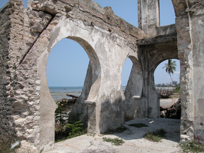 After our recording sessions are finished, we head over to the mainland to have a look at the town of Bagamoyo, a few kilometers to the north. Bagamoyo is infamous for being one of the port cites where slaves were auctioned off and shipped off the continent. The slave blocks are still intact at the old customs house site. It was too depressing to photograph. The old customs house itself had fallen into disrepair some time ago. An older local gentleman by the name of Tuesday sets upon us. He is the first person we have run across who has vocalized anti-American sentiment. He thinks the US is a war-mongering country. I would tend to agree with him.