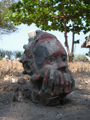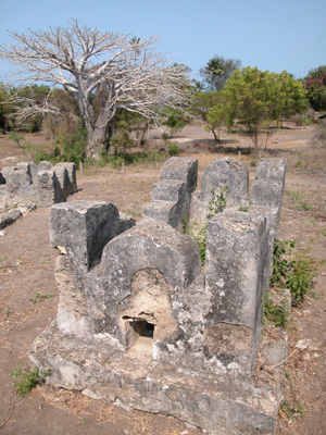 We talk with the head boy for a while. He is curious about how to get student works sold outside of Tanzania. We are all of the opinion that the work is not up to the standards that would get it wide recognition in the West. There is a definite opportunity for a Pixel Corps here. We ask him about the people we had seen on the way into the area with large sacks full of seaweed. He explains that it is used to make dyes and the fibers are made into cloth. Gabriel and Julie buy some jewelry from some of the students. The old Arabic cemetery dating from the 1790s at the top of the hill was far interesting than the German one.