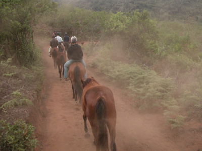 Up at 6:00 a.m. to keep on fixing our artifacted footage. One segment I have completed before breakfast. The other big one is going to take a while. Immediately after breakfast, Chantal and I join the French group in horseback riding. Chantal gets to talking with one of the gents who turns out to be teaching at a French school in Dar es Salaam. He has been in Tanzania for three years and has just signed on for another three. He has some suggestions for our stay in Dar and even offers a place to stay.