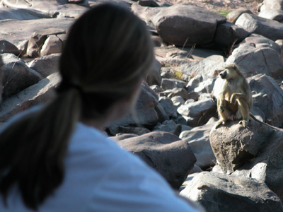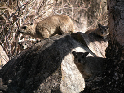 Some wildlife visible form the dining area at breakfast, a hornbill and bush hyraxes.