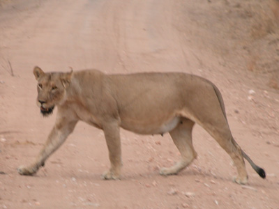 The whole group emerges for the late afternoon game drive. There are no regular drivers available, so Vlad volunteers. He leads us on a rather harrowing journey north of camp. He drives much to fast for us to spot much game, although our guide does point out a pregnant female lion that crosses our path. We are all happy to make it back to camp in one piece.
