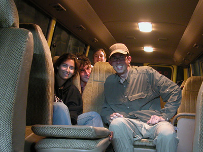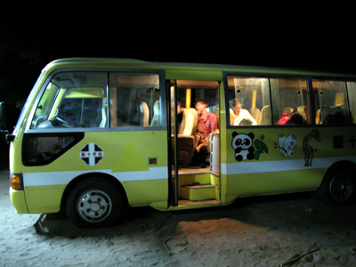 We finally make it to the mainland and are greeted by our next mode of transport, a minibus all decked out like a nursery school field trip. There is some sort of negotiating that goes on between the island staff and the folks on the mainland. It seems that our driver Frank, who took us to Bagamoyo the other day, has given up on us and gone to bed. We have another driver and some other passengers and loose propane tanks along with us for the trip back to Dar es Salaam.