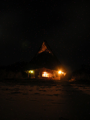 After dinner I take some long exposures of the main dinning area and our banda. I am a bit disappointed to see that the low light noise problem I had with my camera has returned with a vengeance. Lots of clean up work ahead. The moon is a couple of days passed full and is still quite bright. Finally tuck in around midnight.