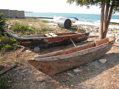 Boats hewn for the most part from a single log.