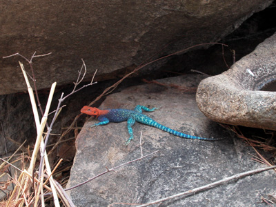 Spotted this baby bird on our porch last might after dinner. The ants have made short work of it. A male agama lizard. The females are black with light yellow markings.