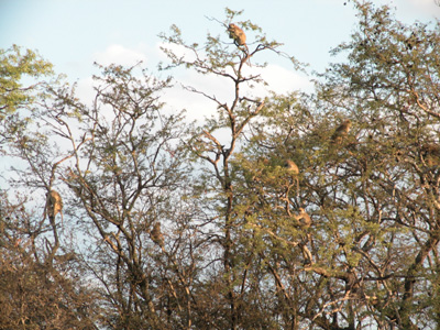 We are back from our drive just before dark to hear that a group of hyenas is in camp and it is not safe to be out on foot. We are picked and driven to the riverside dinning hall. The omni-present Vlad from Lazy Lagoon has caught up with us again. As we board the safari vehicle to return to our cabins after dinner our flashlight beams pick out the eyes of a dozen hyenas in the bush, their retinas reflecting back eerie shades of green and orange.
