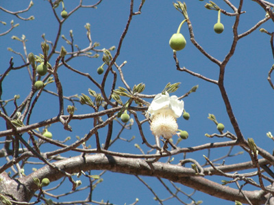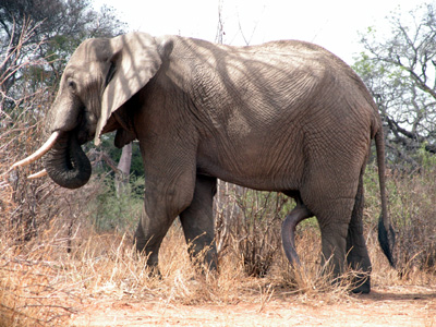 Billy, the bull elephant that terrorizes the camp sporting a fifth leg. The baobab trees are in bloom.