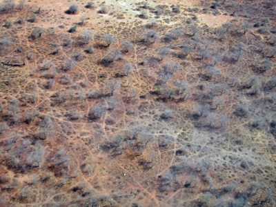 Peter Fox refueling the plane. The fuel pump is powered by the truck’s battery. Game trails scarring the landscape.