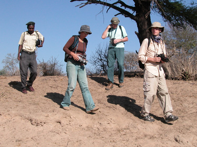 A walking safari has been arranged for first thing this morning. Our group will join a gentleman from New Zealand. We meet up with our guide Francis, Charles, the New Zealander and our armed ranger at 8:00 a.m. We drive about a half hour north of camp and are let off next to the river to hike back.