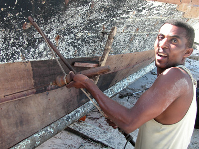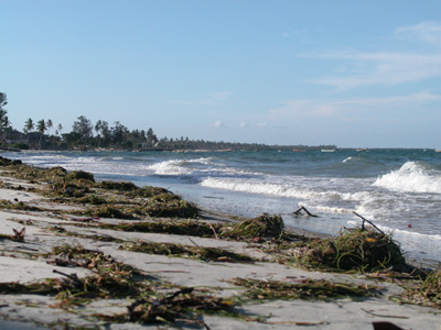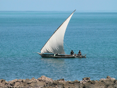 After lunch we were off to the mainland to visit the town of Bagamoyo. Seven of us crammed into a little four-door Toyota. Josa, our driver, was blasting a Sean Paul tape as we bounced over the dirt back road into town. After it finished, we switched over to some Tanzanian grown “Bongo Flava” in the for of the soundtrack to a movie called Girlfriend. Despite the cramped quarters and heat, we all enjoyed the ride immensely. Our first stop was at the Bagamoyo Scuplture School. We poked around for a bit enjoying the jam sessions from the associated music school. I ended up with a nice carving that the others joked looked like a portrait. Stopped for some refreshment at a local cafe while we waited for our driver to return with an additional car. The other car never materialized, so we crammed back into the Toyota.