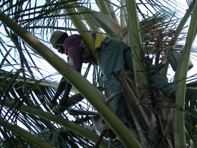 Palm juice is collected to make into wine. This seaweed is collected and rendered down for colorants and fiber for cloth.