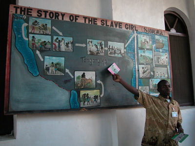 We headed over to the Slavery Museum that was established by Christian Missionaries. The museum was closed but the attendant recognized Vlad and opened it up again, even going so far as to give us a detailed explanation of a freed slave named Siwema who had gone on to nurse back to health the Arab slave trader that had killed her mother. Josa rolled up as we were waiting outside and a group of kids that had gathered joined Chantal in an impromptu disco, dancing to the Bongo Flava.
