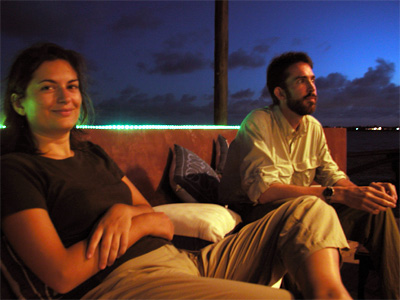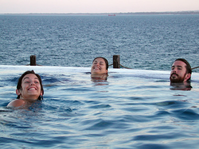 The Golden Tulip Hotel was our destination for a celebratory Tusker beer and a swim. Chantal, Sandrine and I swam while Maina nursed his beer and SMSed. We contemplated how we would get Maina to put down his phone and join us for a swim. The sun was pretty much gone after we got into the pool and it started to cool off a bit too much. Maina eventually finished his beer and we tossed him in. After about an hour we were done in the water and had moved over to a dining area on a bluff overlooking the Indian Ocean. The next two hours were spent conversing and imbibing various alcoholic substances. Anne Marie joined us in spite of being on duty as an employee of the hotel.