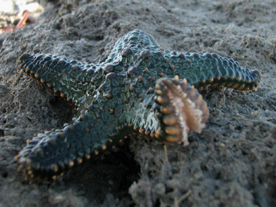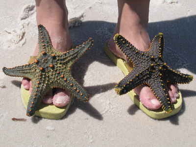 After a bite of breakfast, all of us went back out in search of crabs and starfish. Sandrine slipped and fell early on in our search and went away nursing a scuffed elbow. She re-emerged as we were setting up a photo shoot with some starfish on the sand.
