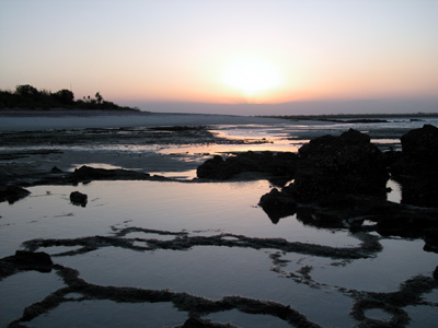 Vlad with a piece of palm driftwood that looked like some sort of musical instrument. The sun sets on another beautiful day in paradise.