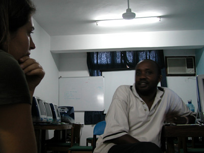 We had just sat down for lunch at the Epi d’Or restaurant when Maina messaged us that Mwanga and his Maasai friend, Rafael were at the office. After the fifth cab we approached, we got a price that was not too overly exaggerated and were on our way to the DTP office. It turned out that we had bumped into Rafael the other night when we went to see Matrix Revolutions. We had all commented to ourselves how different it was to see a Maasai in a movie theater. Rafael explained that he had just come back from his village and was looking for something to do with his wife that evening and had ended up there.