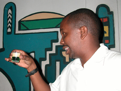 Headed to the Q Bar once again. This time there was a huge contingent of Kenyans organized to help celebrate Maina’s birthday. Most of them were friends of Anne Marie. Interspersed with his usual Tusker beer, Maina was plied with something called a Springbuck, a ghastly green drink that supposedly tasted like minty hot chocolate. We stayed on until 11 p.m.