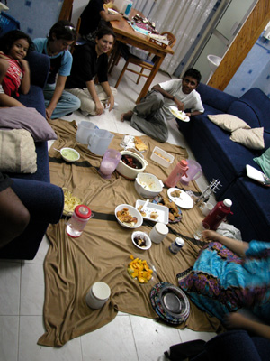 We spend a while trying to come up with a solution to us getting the house instead of the folks who were to come at 7 p.m. to pay. DTP would be the one signing the lease, thus avoiding the issue of Maina not quite yet having his work permit. Everything was going well until he made mention that the other folks were going to pay for a whole year. Maina was devastated and we had a quick huddle before assuring the neighbor that we would be back the next morning with everything in order to take the house. A quick trip back to confer with Shafiq found us at their house as they were breaking their fast. A huge feast was laid out on the floor with everyone gathered around. Arifa insisted that we join them. While we nourished ourselves, the situation with the house was presented to Shafiq who was amenable to having DTP be on the lease. He raised some questions about the integrity of the neighbor and concerns about the situation. We modified our plan slightly and decided we would proceed. Maina was still quite apprehensive about coming up with a years rent all at once.