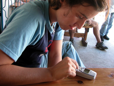 Chantal trying her hand at SMS. We all thought she was typing out a huge novel.