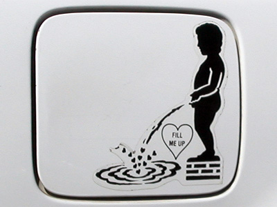 Have seen this little guy on many gas tank covers. Not sure how well the cars would run on his loving offerings of urine.