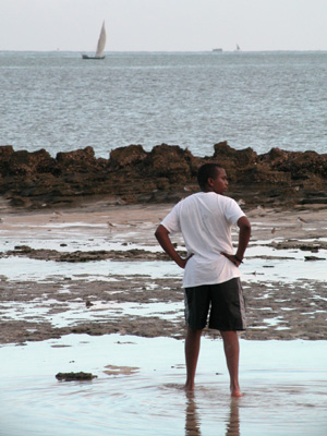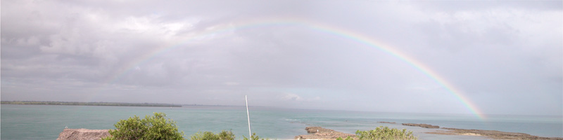 Up at 6 a.m. to watch the fishermen sail by in their dhows. Not a lot of action on this particular morning will have to try our luck again tomorrow. Maina, Chantal and I headed over to the lodge to have tea on the balcony. While we were there it started to rain for a couple of minutes. It was just enough to spatter the ground with raindrops and to cause a full rainbow to appear at the end of the island.