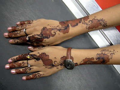 The checkout lady had beautiful mehndi ( a temporary henna tattoo) all over both hands and forearms.
