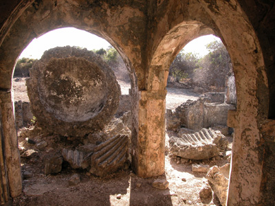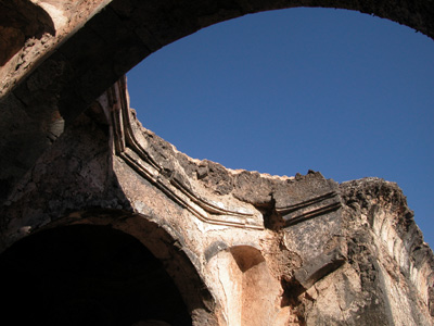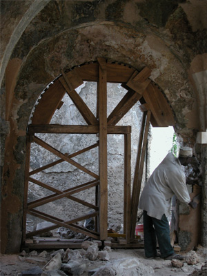 Stabilizing the tops of the walls. A colony of bats enjoy the domed ceilings.