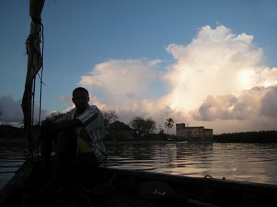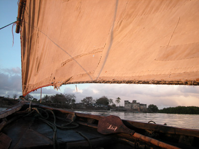 We wound our way back to the Great Mosque as the sun was setting. Our dhow was waiting in the harbor to take us back. The trip to the mainland was a little longer as the wind was not as consistent as it had been in the morning.