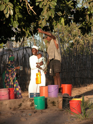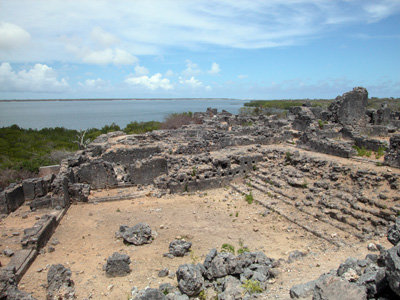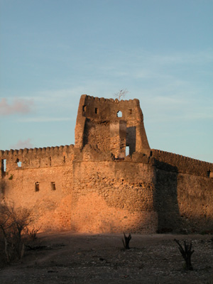 Water can be drawn from the wells on Kilwa Kisiwani only when the tide is in. The fort in the waning light.