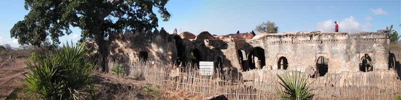 Looking out over Hisini Kubwa and some detail shots including a collapsed conical ceiling.