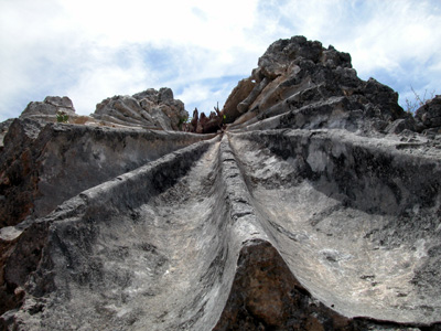 Pierre had to return to the mainland, so the rest of the afternoon was spent filming the Eddy interacting with the workers. Eddy is very well liked by the crew. When asked why she was keen on learning stone carving, one lady replied that she liked working with Eddy and that was enough reason. We headed over to Eddy’s house for a spot of refreshment before going into the village to elicit the opinions of some of the locals about the project. The verdict was favorable and the two folks we talked to were both pleased with the project and thought it was beneficial. The second gentleman we talked to was the head of an Islamic school. We were fortunate enough to come across the school as the students were reciting a devotional song. The song was amazing, with fantastic toned drums and the girls and boys singing different parts.