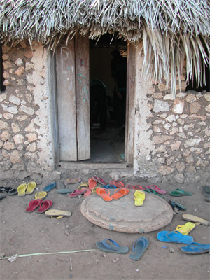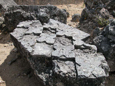 After a bit of surveying work was completed, Pierre led us on a 20-minute hike under the scorching noonday sun to Husini Kubwa. The ruins here were of a massive palace dating from the 12th century and covering more than a hectare. The palace was constructed to take advantage of the bluff that it was located on and laid out to impress visitors with its enormity. Visitors entered to the structure via a grand staircase that put them on the roof of the rooms lining a huge courtyard that functioned as a marketplace. The visitors continued on the rooftop all the way around the courtyard before descending into the marketplace via another grand staircase just before the initial one. The sultan’s quarters were right on the edge of the bluff, affording ample sea breeze and a panorama of a large swath of the island and long portion of the mainland. We descended the marrow stair would have brought the sultan to the shore and hiked back to the Great Mosque. We stopped along the way to have a cup of delicious tea spiked with ginger. It was the best tea I have tasted in a long, long time.