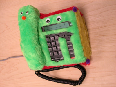 A little late night project at work. A custom hand-made phone cozy for one of my co-workers. There is a very good chance that I have finally lost my mind.